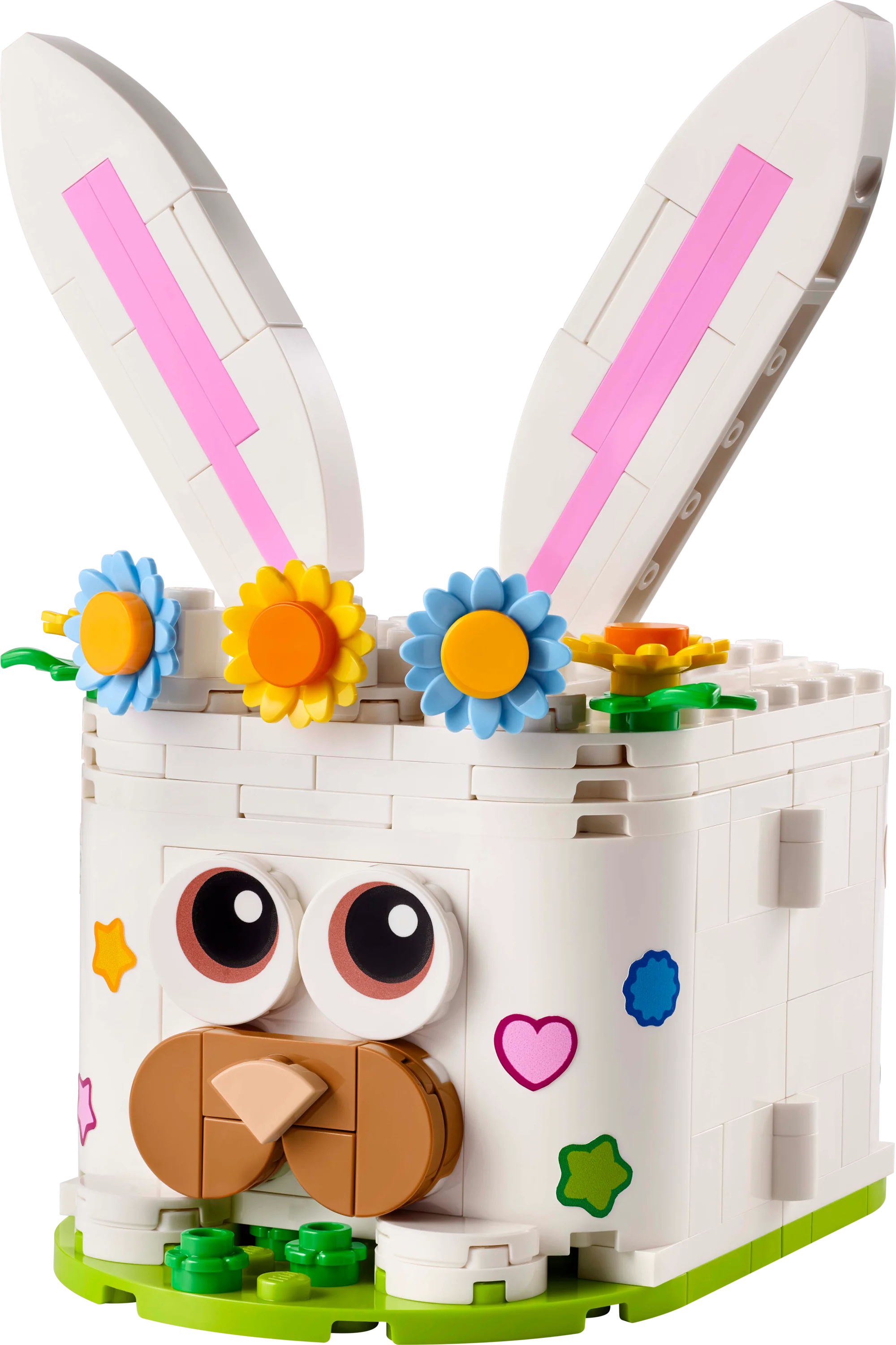 Celebrate Easter with kids aged 7 and over, families and this LEGO® Easter Bunny Surprise (40764) portable home decor playset. The animal toy features a box with a removable lid that has movable ears and a flower crown. The box opens to reveal a small play scene with rabbit and squirrel figures on a spinning base, plus springtime and Easter items including eggs, flowers, a tree and a carrot. The set also includes stickers to customise the portable playset and bring your rabbit to life!