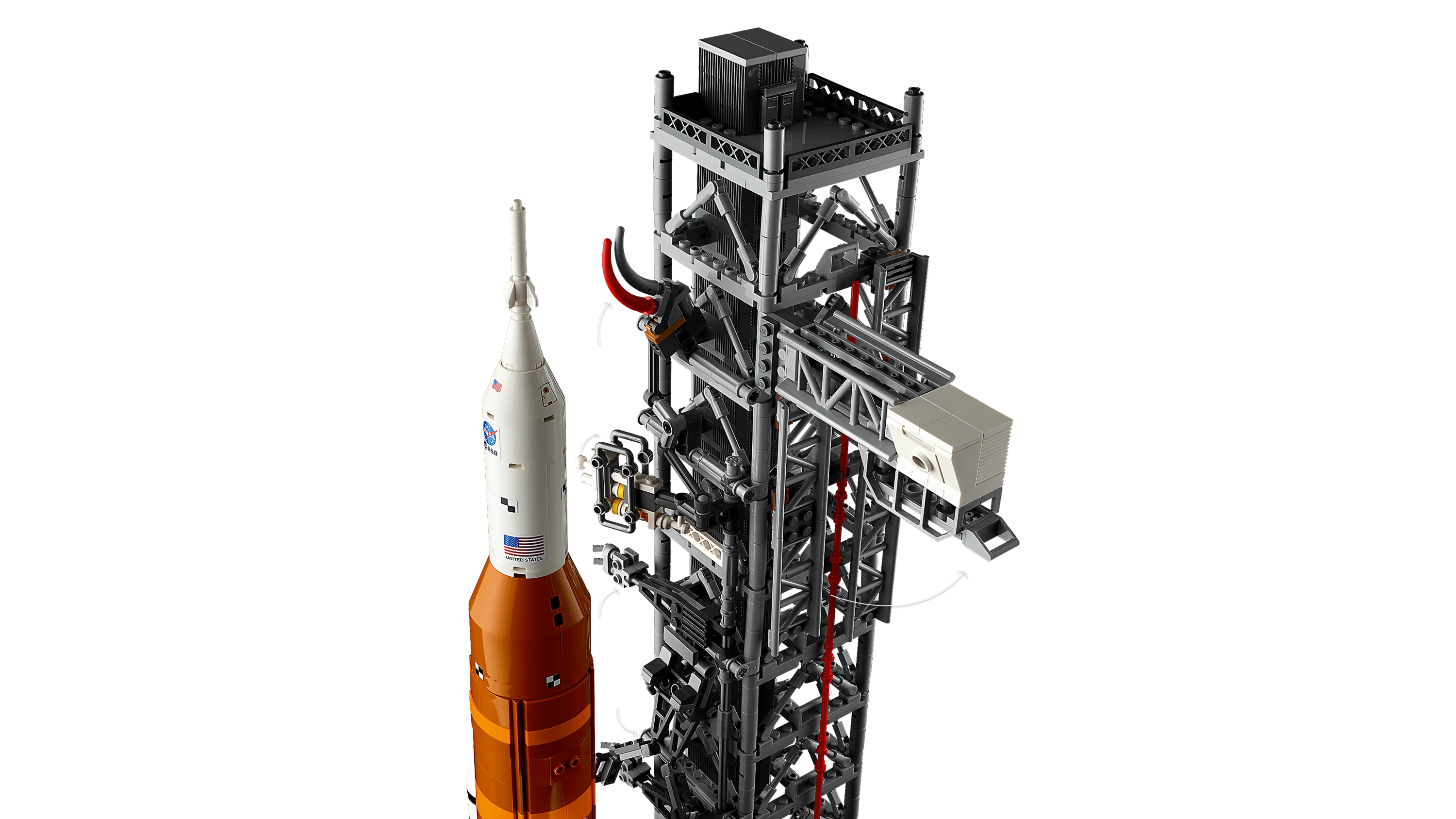 This accurate replica depicts real launch systems and includes retractable launch tower umbilicals, rocket support and crew bridge, detachable solid-fuel boosters and separating rocket stages. The set also includes a model of the Orion module with foldout solar panels, which can be placed inside the rocket or on a separate display stand. An information plaque adds the finishing touch to this impressive model, perfect for home and office decor.